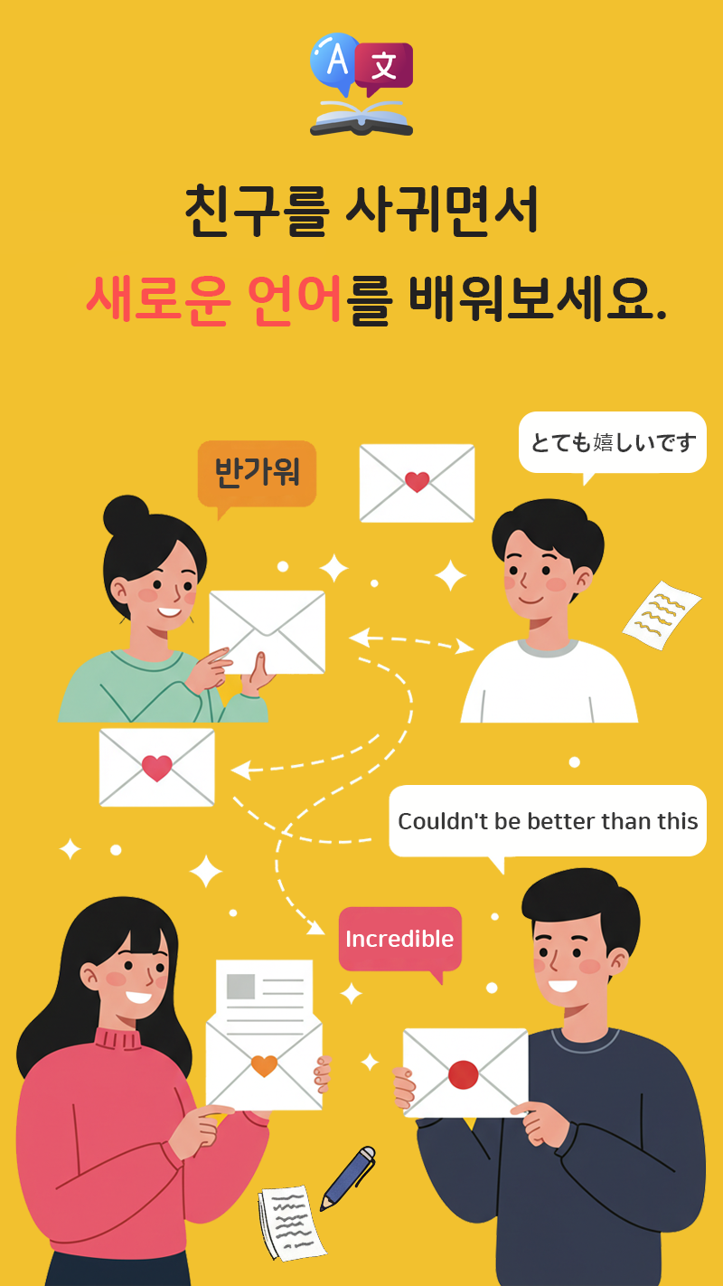 진실된 우정과 깊이 있는 소통을 찾는 분들을 위한 무료 펜팔앱입니다.